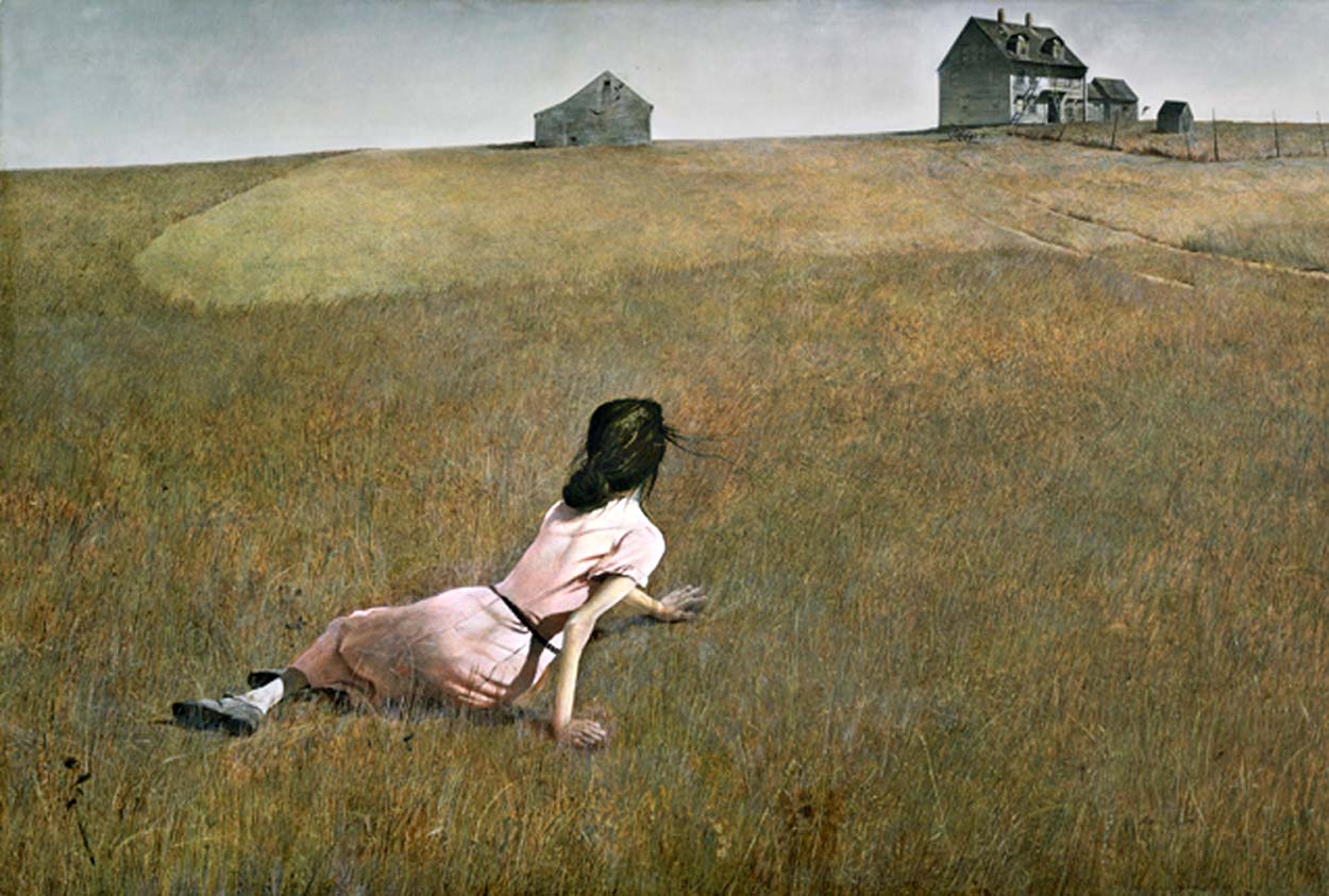 I was desperate to find some subject matter for my group; even if it was to be without any light. I had remembered that Andrew Wyeth had summered nearby and painted his famous “Christina’s World”, so I obtained permission to take the class there to have some fun, and after three days of overcast skies, the class was actually smiling…albeit just a little.