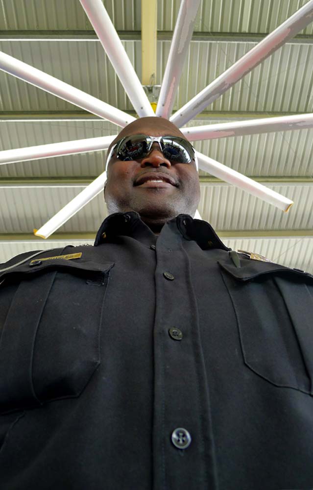 There are times when you can use this flaw to your advantage, and have fun with it; as in the photo above taken by a student in my online Gestalt class, and the photo I created of the cop with the fan on his head.