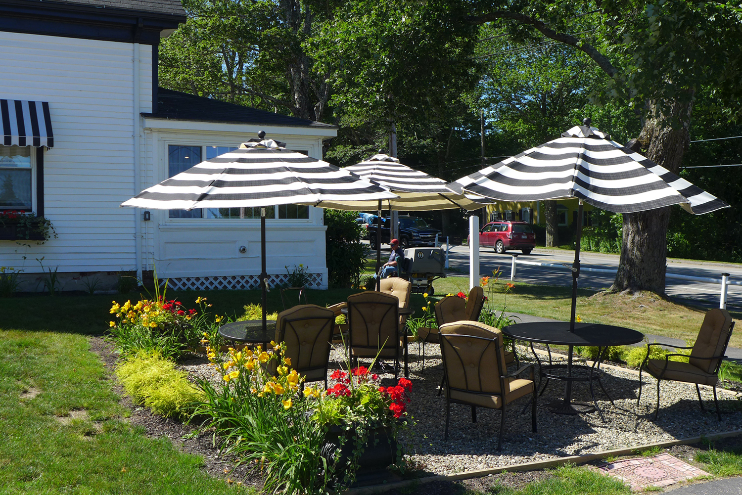 I was driving from Rockport where the workshop campus is located down to Rockland where the Lobster Festival was slated to start a few days later. As I passed one of many motels along scenic Route 1, I noticed several striped umbrellas grouped together that offered shade to the residents wanting to sit around and enjoy the fabulous weather.