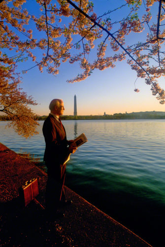 In the above photo, I was sent to D.C. to take environmental portraits of all the partners in a law firm. They wanted these partners in close proximity to one of the monuments. I positioned this man with a keen eye as to keeping some negative space between the Washington monument and the cherry blossoms; while being cognizant of the balance between the three subjects.