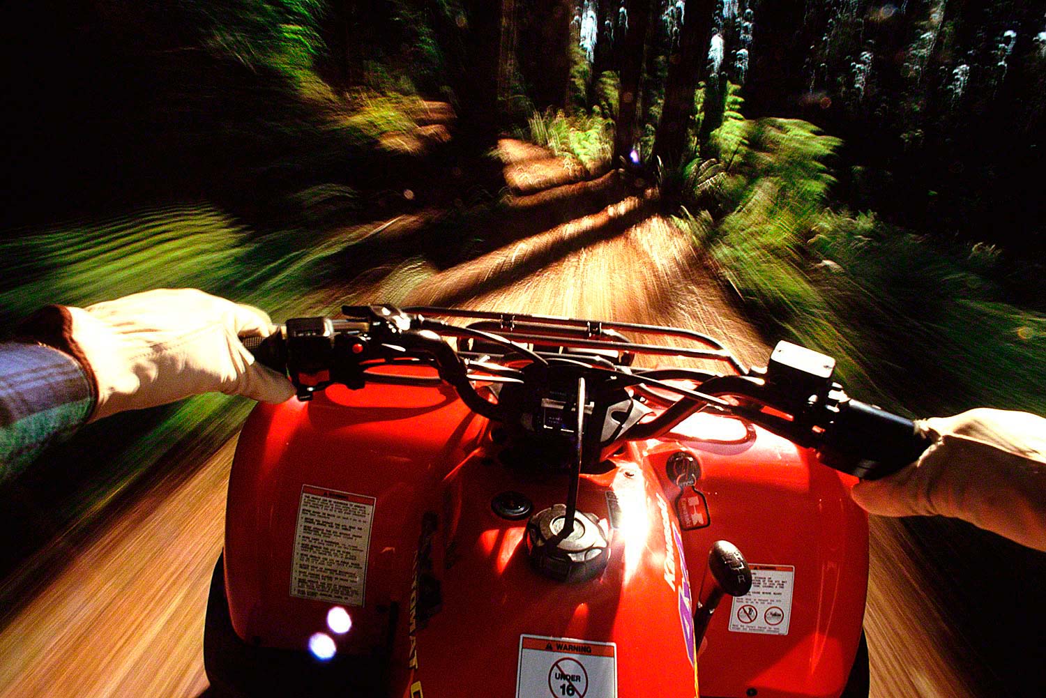 As I was driving through all the trails, I was firing my motor drive at the same time. I shot just about every combination of shutter speed and aperture as I could so we would have choices in the amount of blur and motion. It was great fun!!!! A lot more fun than the quick and easy way it would probably be done now. It would either be done on a blue screen in a studio, or we would just sit the four-wheeler on a path, shoot it, and add the motion and speed in post production…HOW BORING!!!!!