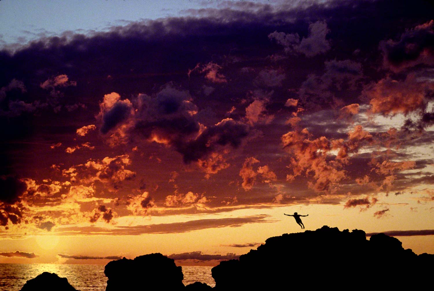 I saw this cloud moving fairly fast across the water from right to left, and became worried that it would finish the shoot by blocking the sun; I knew it was going to be close. I was hoping that the sun would drop enough to be under the cloud formation and not stop the shoot. What I didn’t realize is that when the sun did do as I was hoping, and fell below the cloud, it lit up the underneath like something I had never seen before.