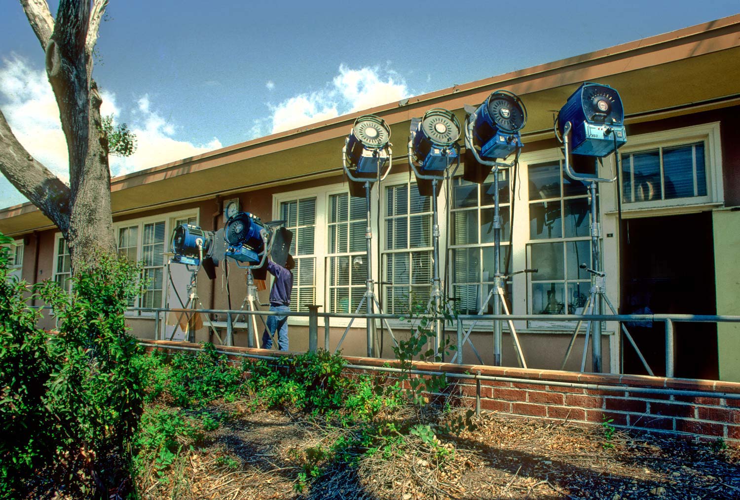 So, what do you do? You bring out the “big lights”, 12K HMI’s, the lights I often used both in print and when I was acting as a director/cameraman on TV commercials. These lights were 12,000 watt daylight balanced lights that needed a big generator and ballasts to operate…and a package that included a gaffer, assistant, truck and portable generator would run about $2000.00 a day for just one light, CTO gels (warming gels since the light was on the blue side) and barn doors.