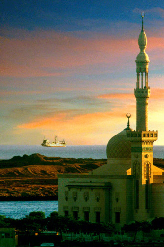 In this photo, we were through shooting the Suez Canal and were eating dinner in a restaurant. I had my 300mm F/2.8 lens still on my tripod right next to me. I turned around as I always do, saw this light, shot the photo and in less time it took me to write this one sentence it was gone.